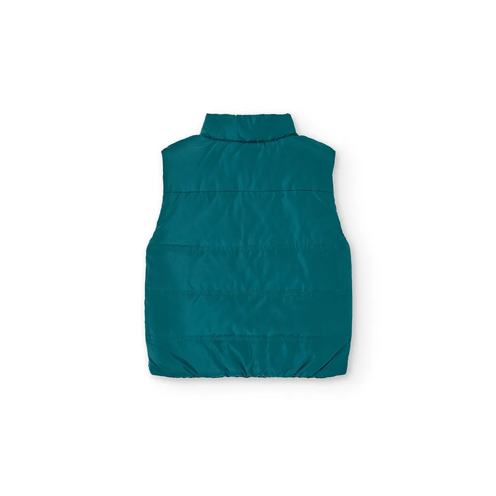 Gilet tecnico reversibile in maglia verde e blu navy per bambino, ideale per la mezza stagione.
