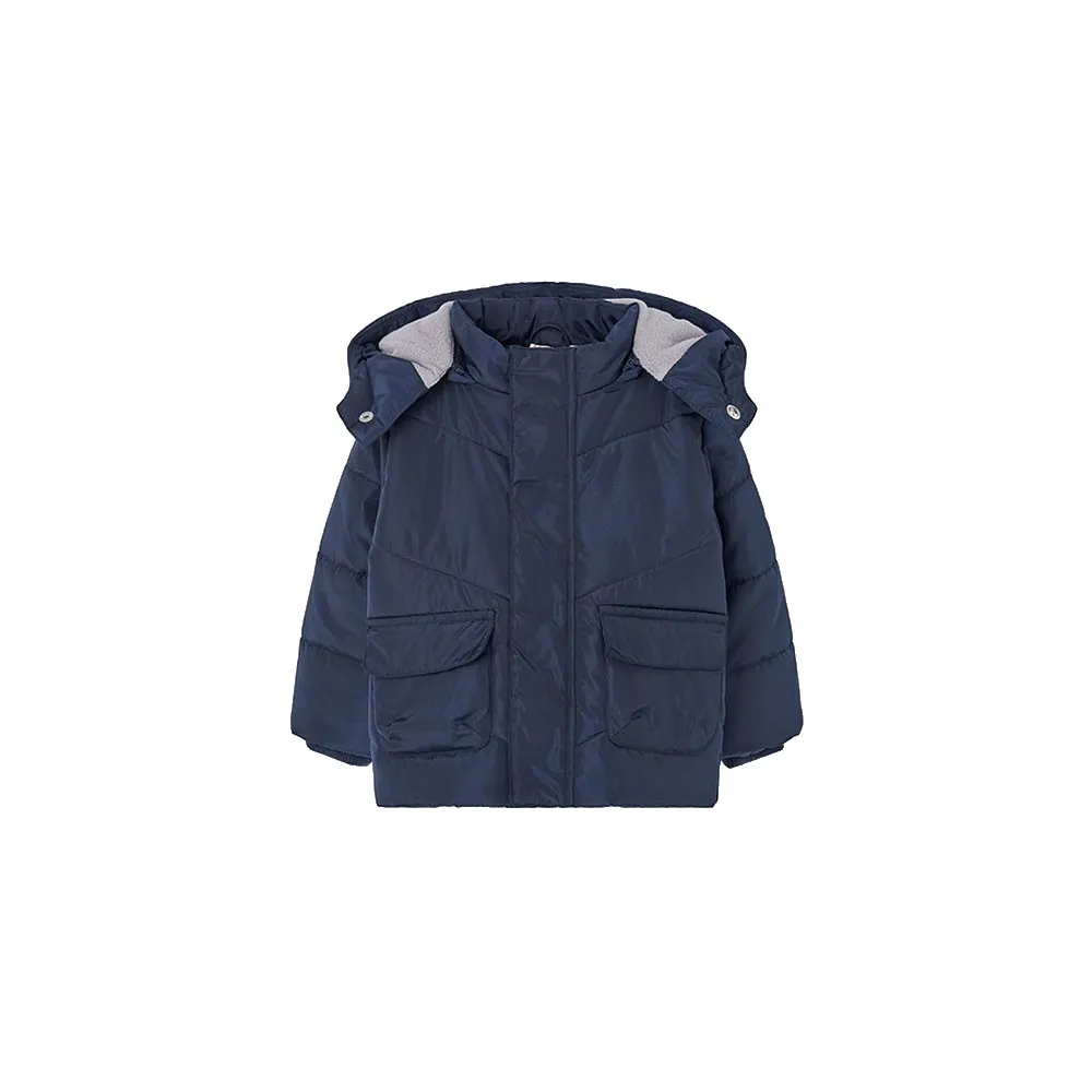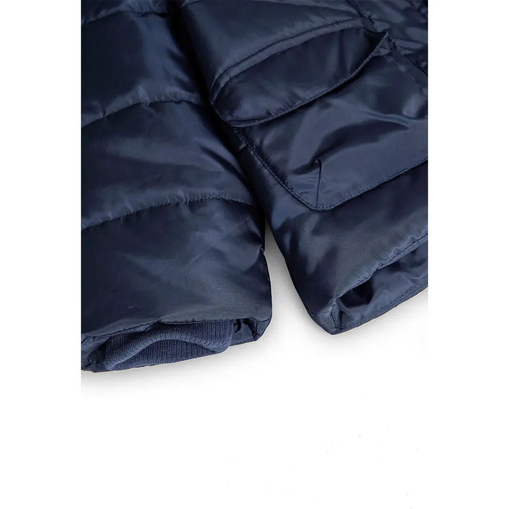 Parka in tessuto tecnico per bambino color blu navy, ideale per le basse temperature autunnali e invernali.