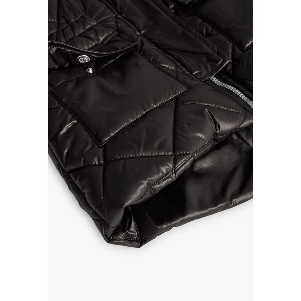 Parka in tessuto tecnico nero per bambina, ideale per tenere al caldo la tua piccola durante le stagioni autunnali e invernali.