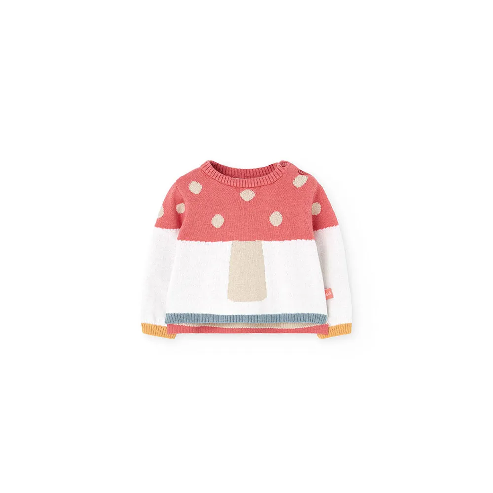 Completo in maglia per neonato in vari colori con dettagli a fungo, specificamente progettato per la stagione autunnale e invernale.