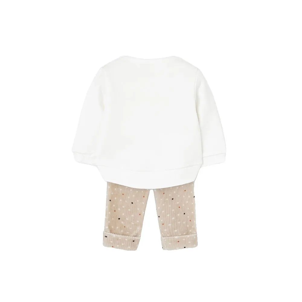 Completo composto da felpa stampata e pantaloni in maglia, ideale per le neonate durante le stagioni autunnali e invernali.