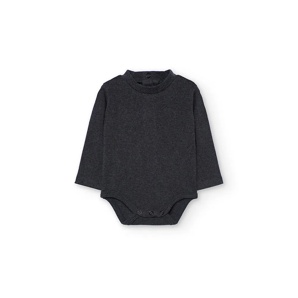 La maglietta a maniche lunghe, realizzata in morbido tessuto grigio scuro, offre calore e comfort.