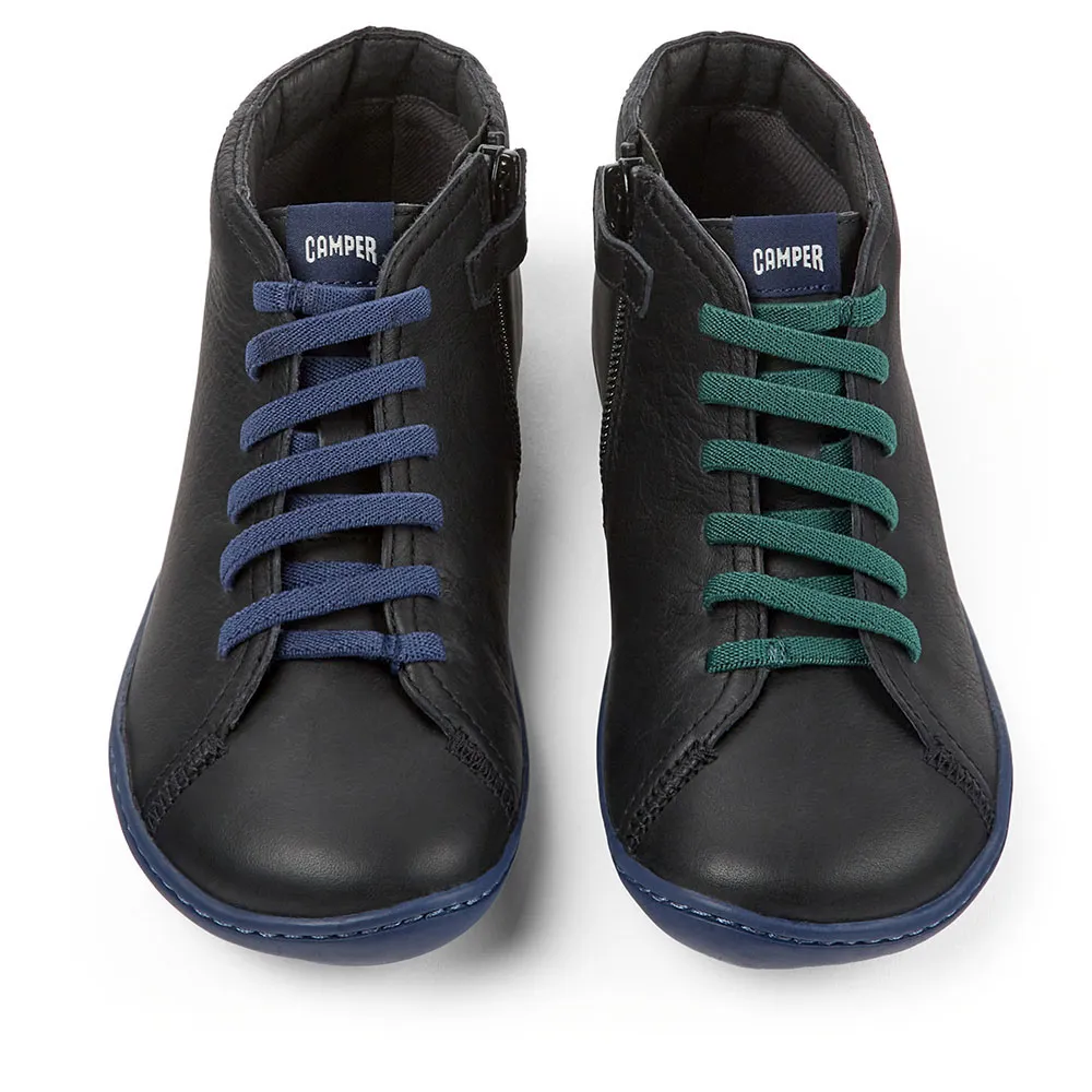 Stivaletti alla caviglia per bambini in pelle nera con lacci elastici e suola in gomma (20% riciclata).