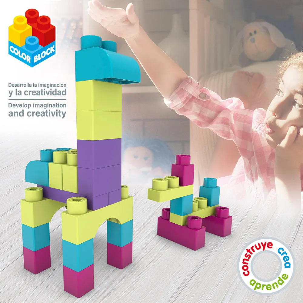 Il COLOR BLOCK Trendy Container è un divertente e educativo set di giocattoli che include 80 pezzi di blocchi multicolori. Progettato sia per ragazzi che per ragazze, questo giocattolo è perfetto per bambini dai 3 anni in su.
