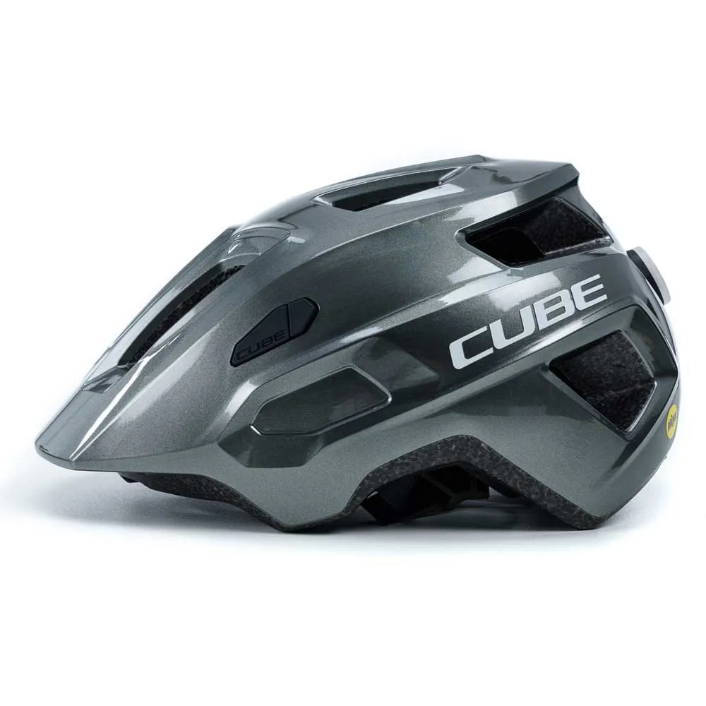 - Il sistema di protezione del cervello MIPS è presente in molti caschi CUBE. Mips è uno strato a bassa frizione tra il casco e la testa che consente un movimento di scorrimento di 10-15 mm, in tutte le direzioni, riducendo il movimento rotatorio al cervello durante le forze di impatto.