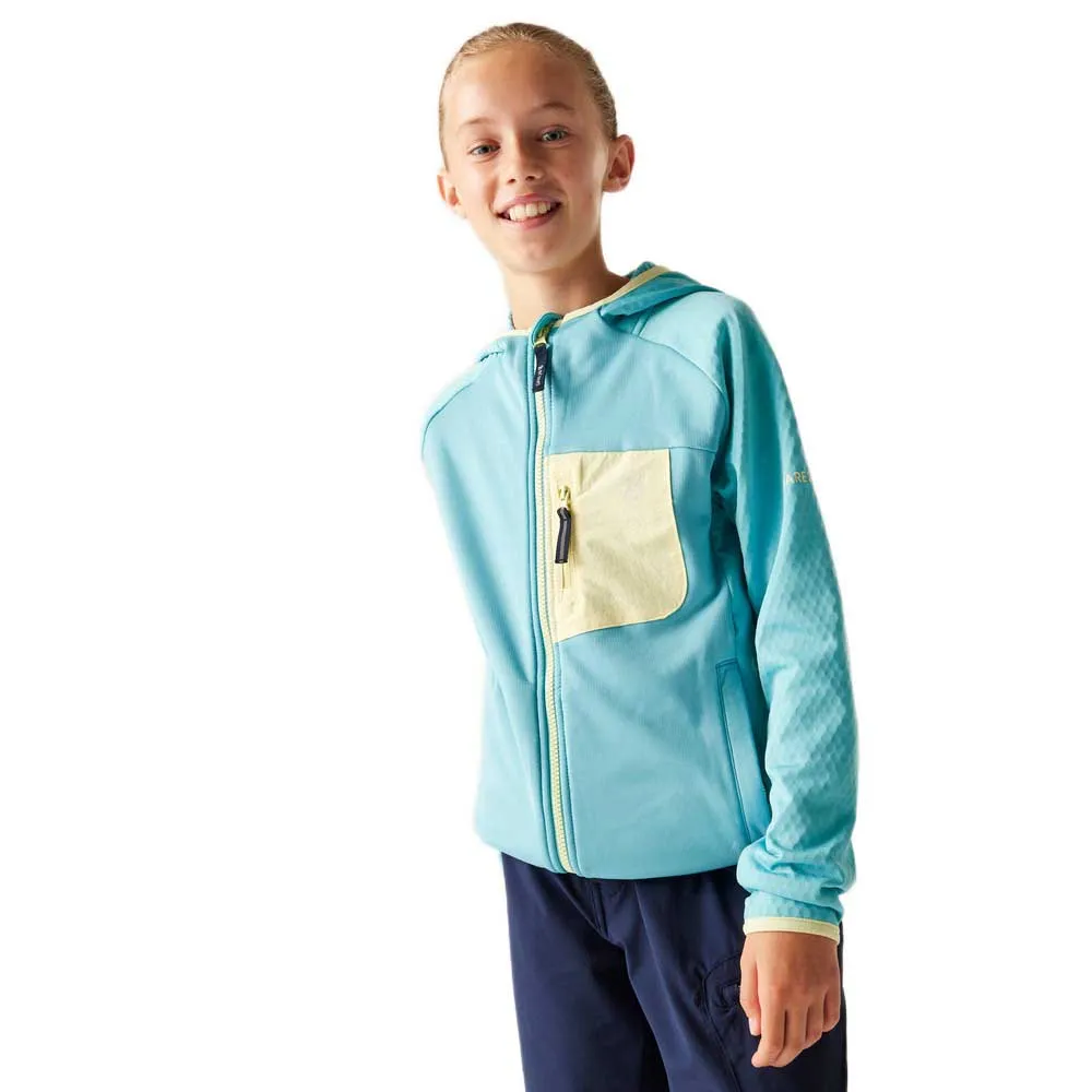 Costruita per le mini avventure, la giacca da trekking per bambini li avvolge nel calore del pile elasticizzato, con un cappuccio accogliente. La protezione solare UPF 50+ aggiunge sicurezza contro il sole, e i tiretti riflettenti della zip offrono maggiore visibilità all´esterno.