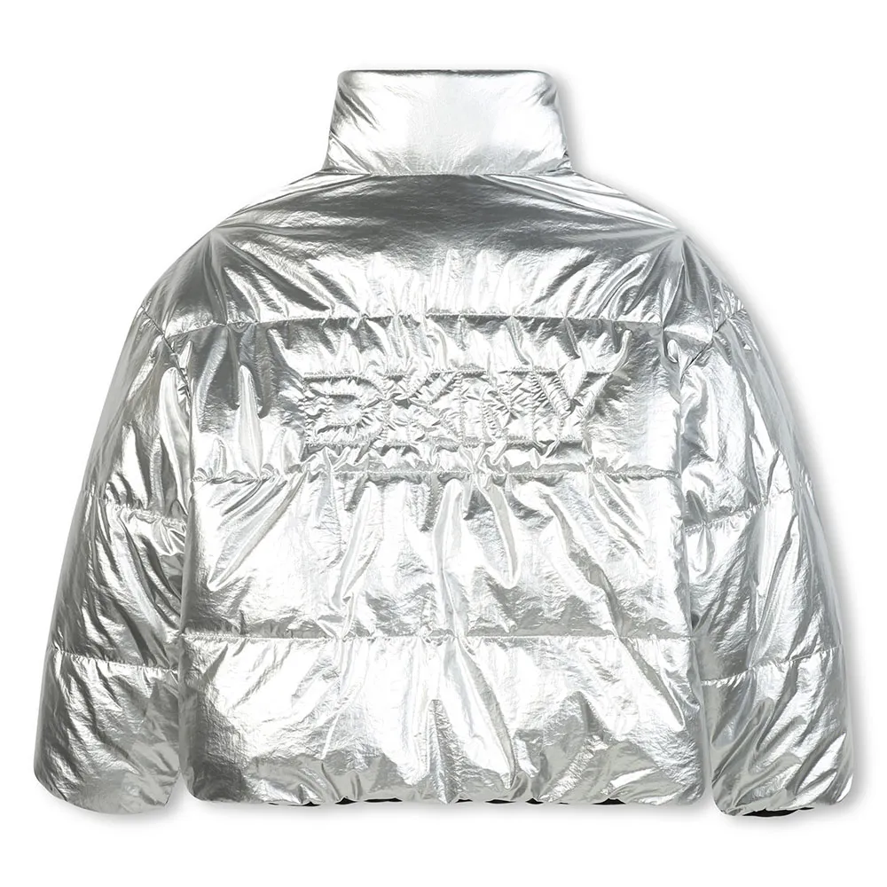 Un lato in poliammide argentato, 2 tasche frontali, logo DKNY stampato sul petto, logo DKNY trapuntato sul retro.