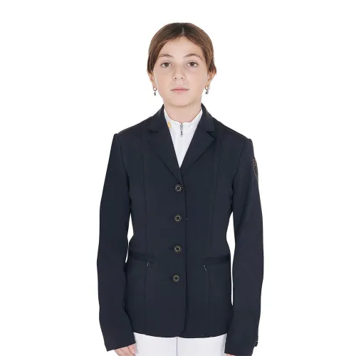 Giacca slim-fit per bambini realizzata in un tessuto tecnico morbido ed elastico per una maggiore libertà di movimento, pur mantenendo l´eleganza tipica dei prodotti Equestro.