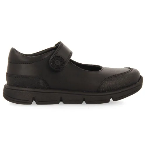 Per affrontare tutte le sfide del nuovo anno scolastico! Ballerine scolastiche in pelle nera con chiusure regolabili.