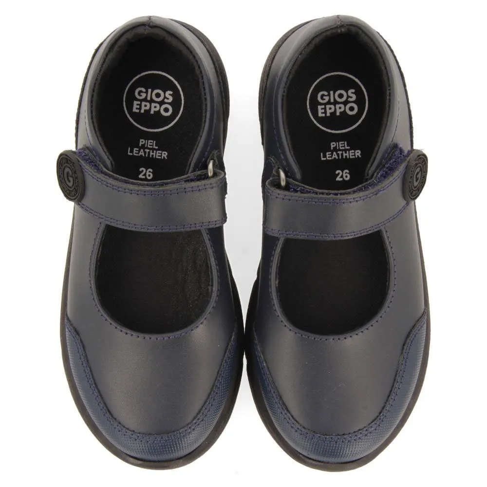 Per affrontare tutte le sfide del nuovo anno scolastico! Ballerine scolastiche in pelle blu notte con chiusure regolabili.