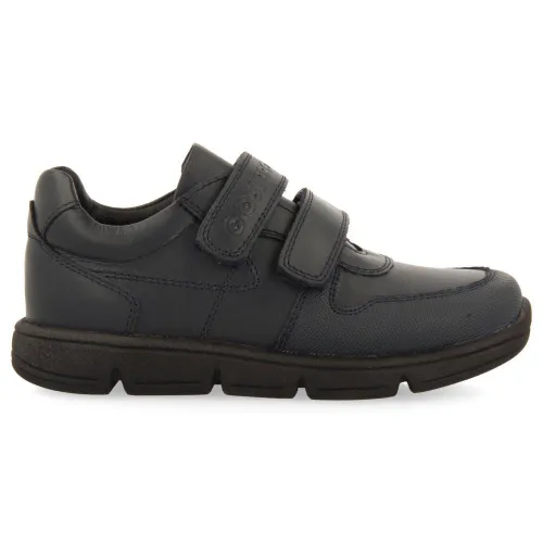 Sneakers da scuola in pelle blu navy con chiusure regolabili.