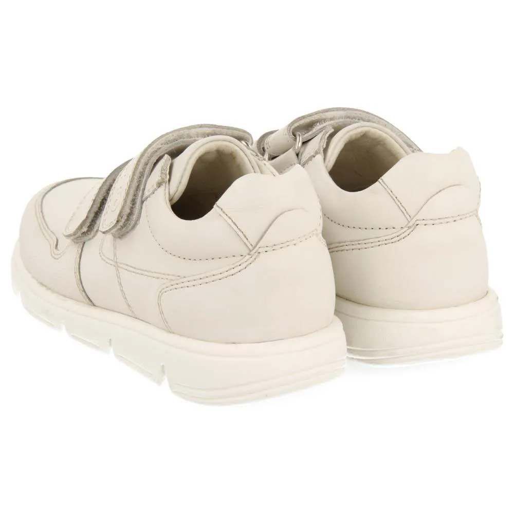 Sneakers da scuola in pelle bianca con chiusure regolabili.