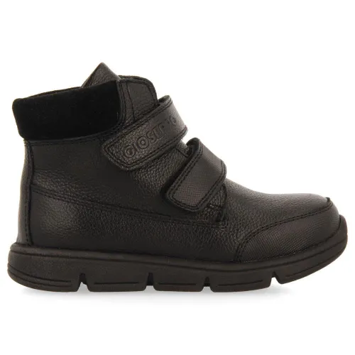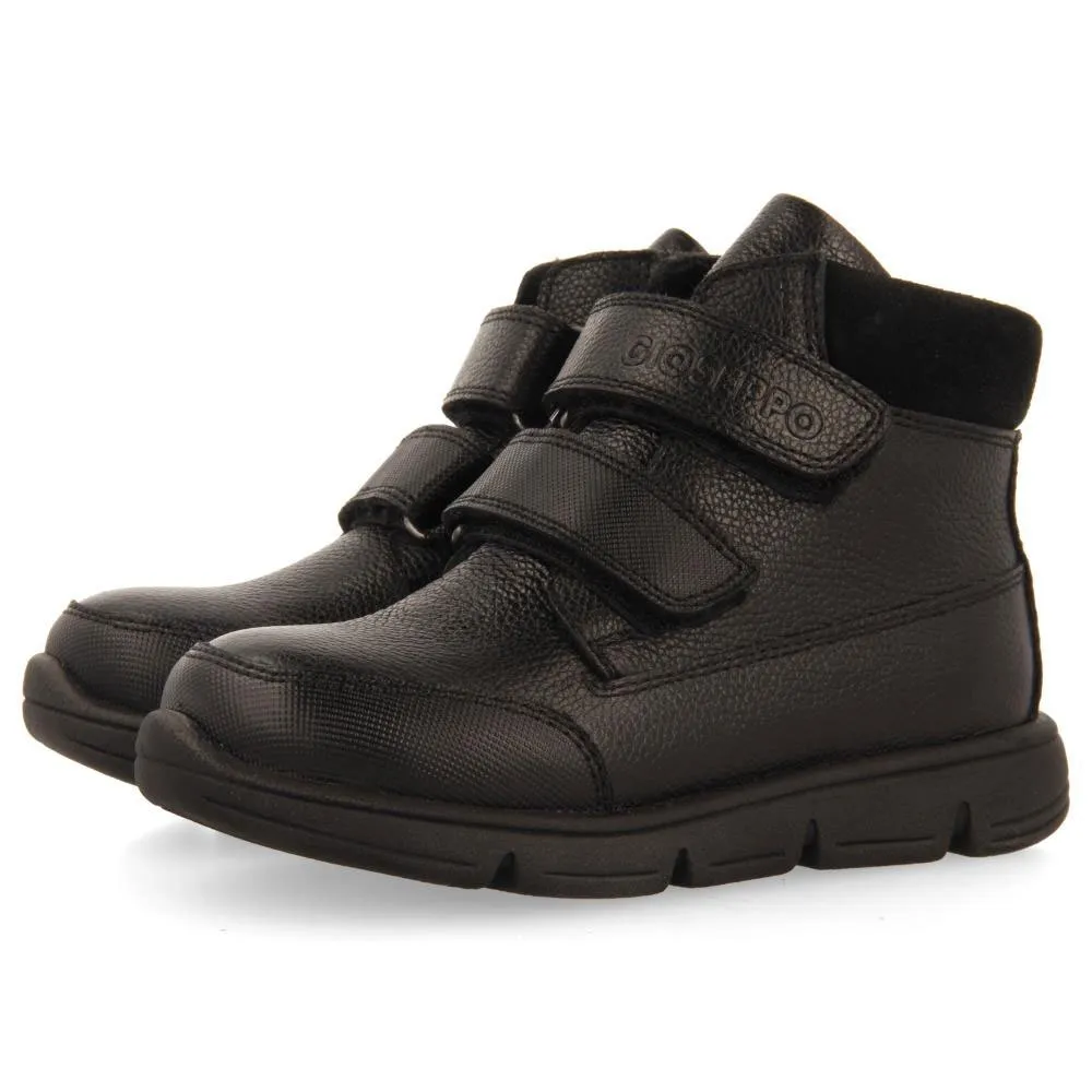 Stivaletti da scuola in pelle nera con chiusure regolabili.
