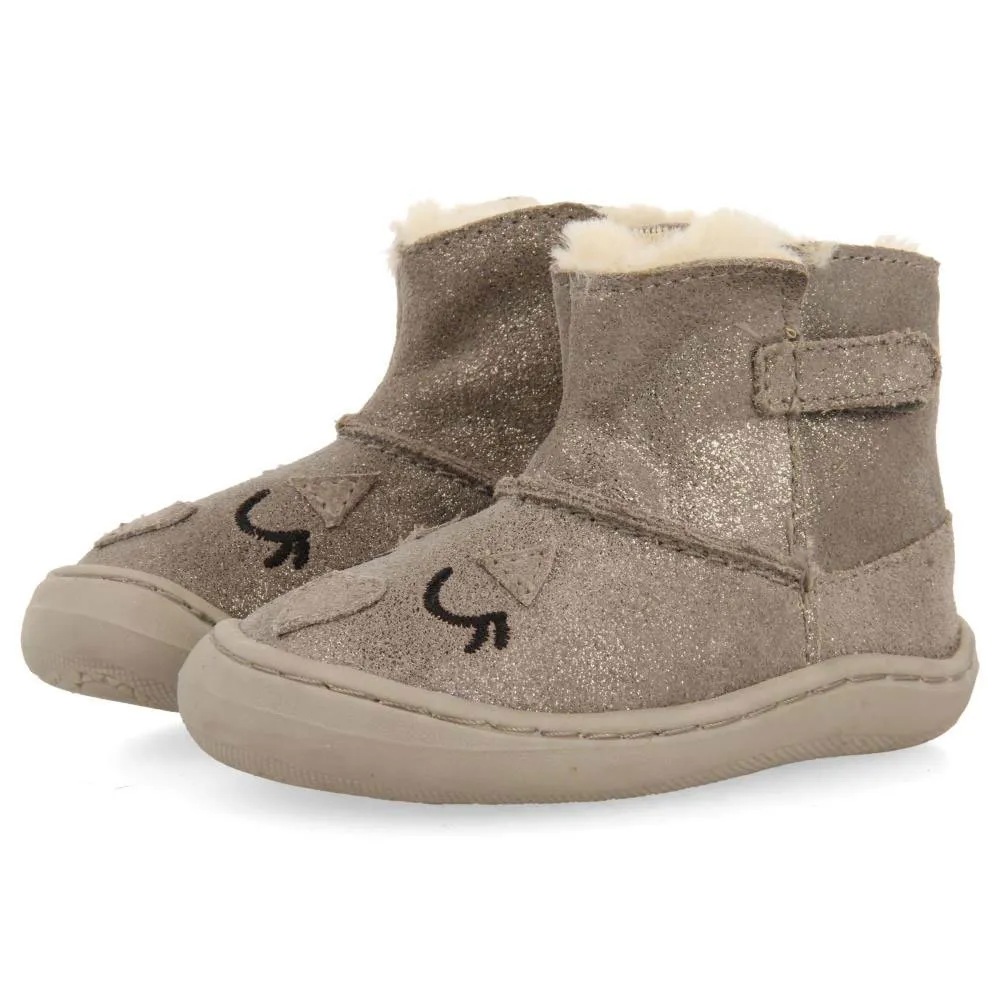 Stivaletti grigi con ricami e chiusure regolabili senza elementi anatomici che possano ostacolare lo sviluppo ottimale del piede.