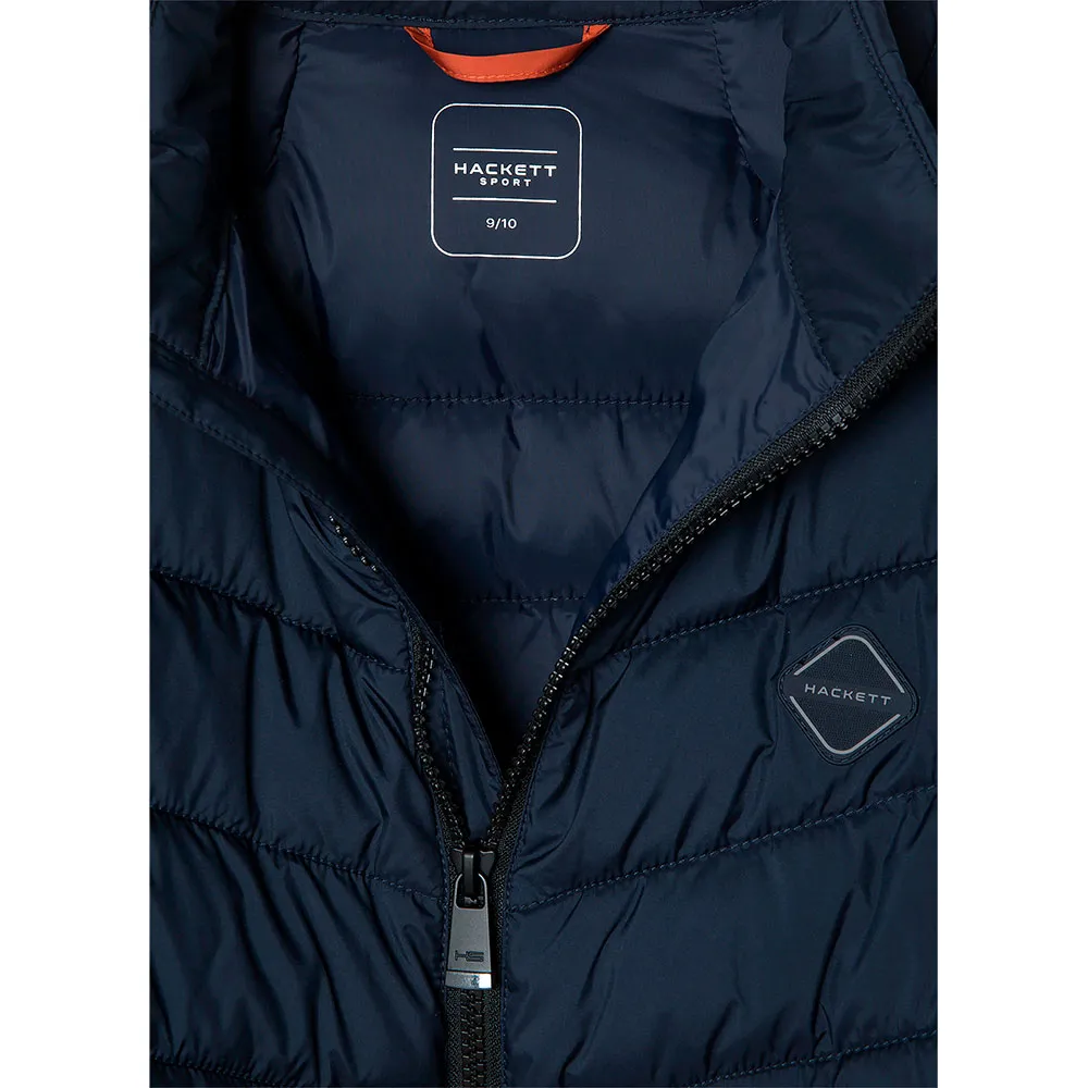 Progettata con meticolosa attenzione ai dettagli, la giacca presenta una caratteristica costruzione trapuntata che non solo fornisce una distribuzione uniforme del calore, ma aggiunge anche un tocco di texture dinamica e appeal visivo. L´elegante collo alla coreana offre una scollatura pulita e raffinata e una maggiore protezione contro la brezza, incarnando un design sofisticato che funziona perfettamente senza cappuccio. Una chiusura frontale con zip integrale consente di indossarla facilmente e di regolare la ventilazione, mentre il bordo elasticizzato sui polsini e sull´orlo assicura una vestibilità aderente e sicura che aiuta a trattenere il calore e a mantenere la silhouette nitida della giacca. Per praticità, è dotata di due tasche laterali, complete di chiusure con zip per tenere al sicuro i piccoli oggetti essenziali e le mani al caldo. L´iconico logo HACKETT è discretamente posizionato sul petto, a testimonianza della qualità e dello stile britannico distinto.