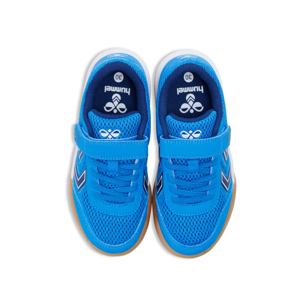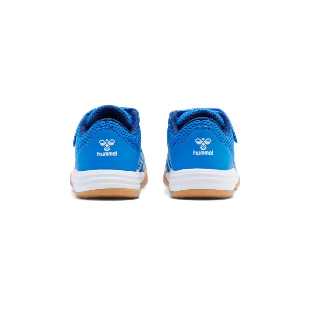 MULTIPLAY FLEX VC Elle La struttura aperta, la chiusura in velcro e la suola ampia e stabile della JR offrono ai bambini un comfort e una vestibilità eccezionali. offre inoltre un´eccellente aderenza multidirezionale grazie alla suola in TPR con tacchetti a forma esagonale. hummel L´ammortizzazione extra dell´intersuola in EVA aumenta il comfort di questo modello, che i bambini ameranno indossare!