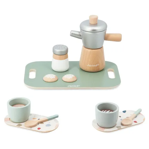 Cercavo da molto tempo una caffettiera espresso giocattolo in legno e finalmente ho trovato questa. È davvero carino, sembra fantastico anche dal vivo. Sono così felice e le mie figlie adorano giocare con l'intero set. I vassoi, le tazze e i biscotti sono fantastici.