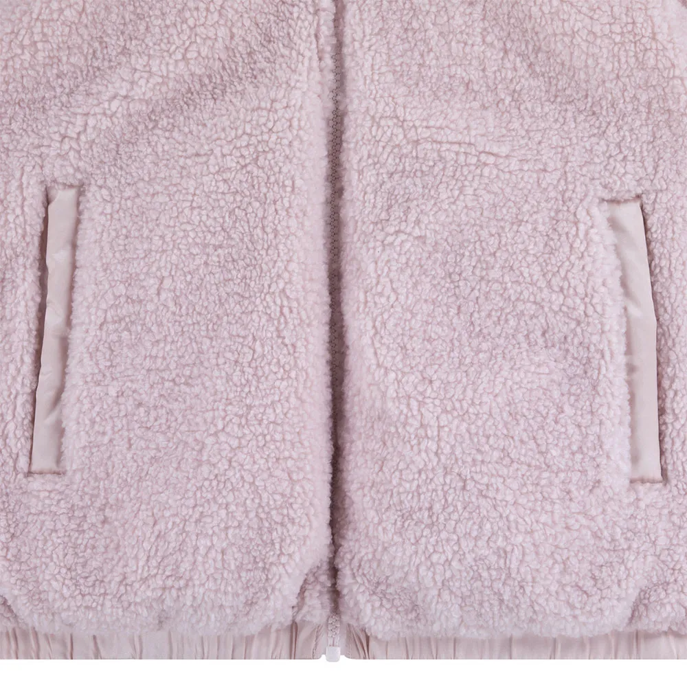 Design reversibile con un lato in taffetà impermeabile lucido e un lato in sherpa felpato.