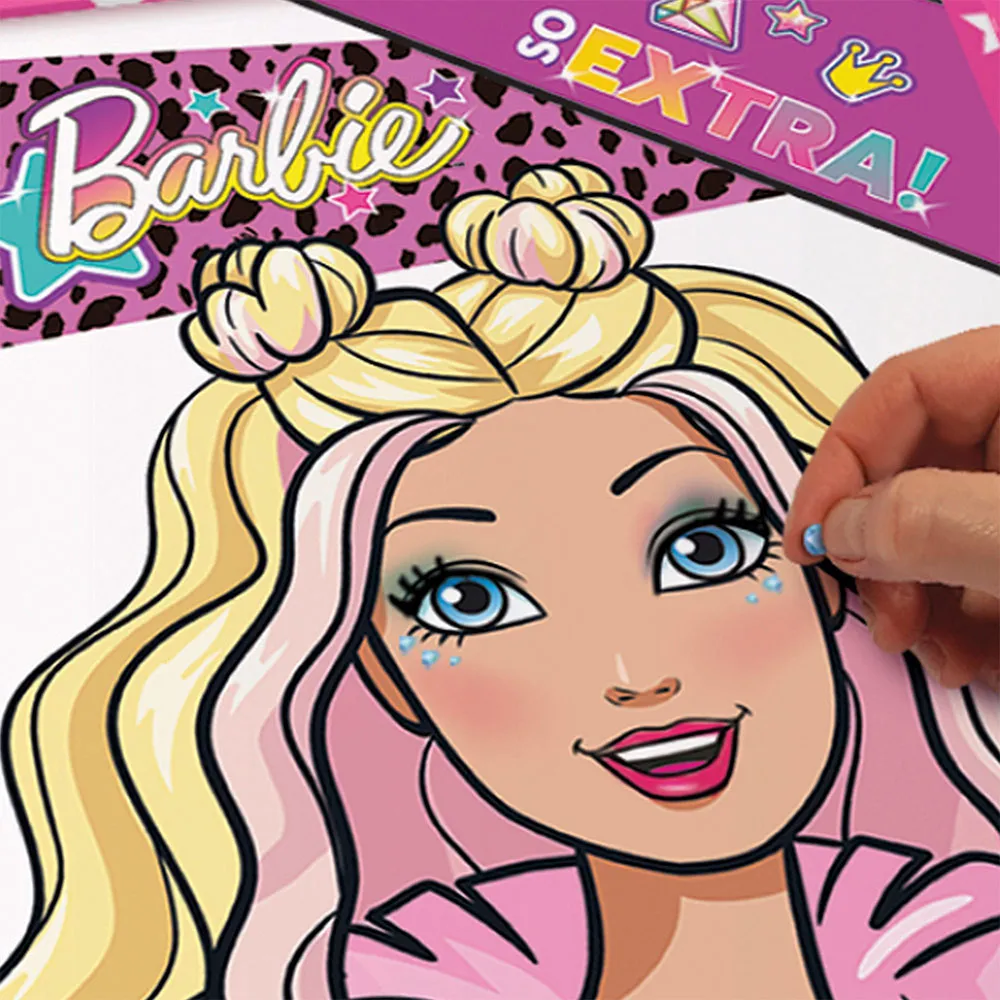 Diventa lo stylist ufficiale di Barbie con questo set trucco 3 in 1! Include ombretti, fard, lucidalabbra, gemme adesive, pennelli, una matita per gli occhi e un libro di attività con pagine con illustrazioni di volti di diverse bambole Barbie, ritagli e accessori per truccare e personalizzare il loro look.