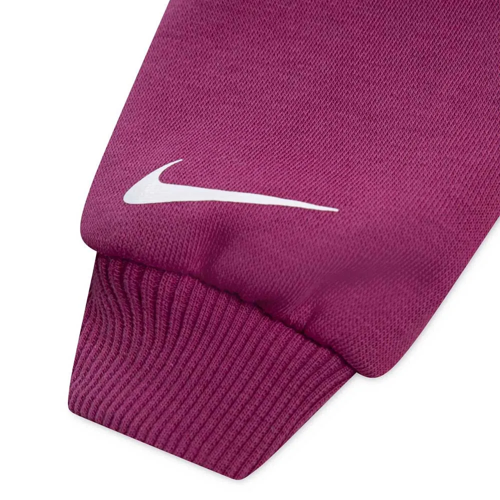 I pantaloni lunghi abbinati sono progettati per una vestibilità perfetta e la massima funzionalità. Sono dotati di una morbida fascia elastica in vita con coulisse regolabile, che consente una vestibilità personalizzata e sicura che cresce con lei. Questo dettaglio pratico assicura che i pantaloni rimangano al loro posto, offrendo comfort e tranquillità per tutto il giorno. Stretti verso i polsini a coste alle caviglie, i pantaloni offrono una silhouette pulita e moderna, perfetta per mettere in mostra le sue sneakers Nike preferite.