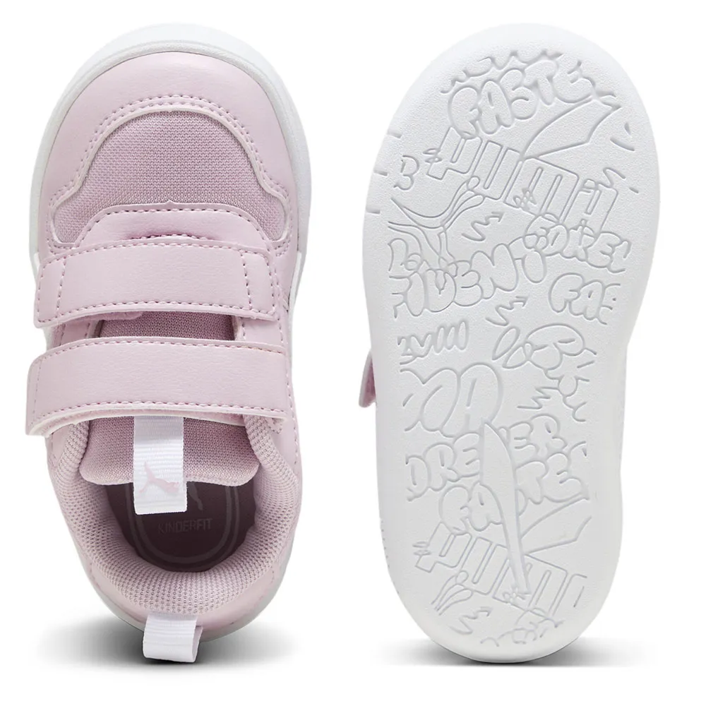 Dotate di tomaia traspirante, audace marchio PUMA, chiusura a strappo e passanti sul tallone e sulla linguetta per facilitare la calzata e la rimozione, vestibilità migliorata e collo del piede e suola in gomma resistente per una trazione superiore, queste sneakers alla moda faranno dimenare il tuo bambino con stile.
