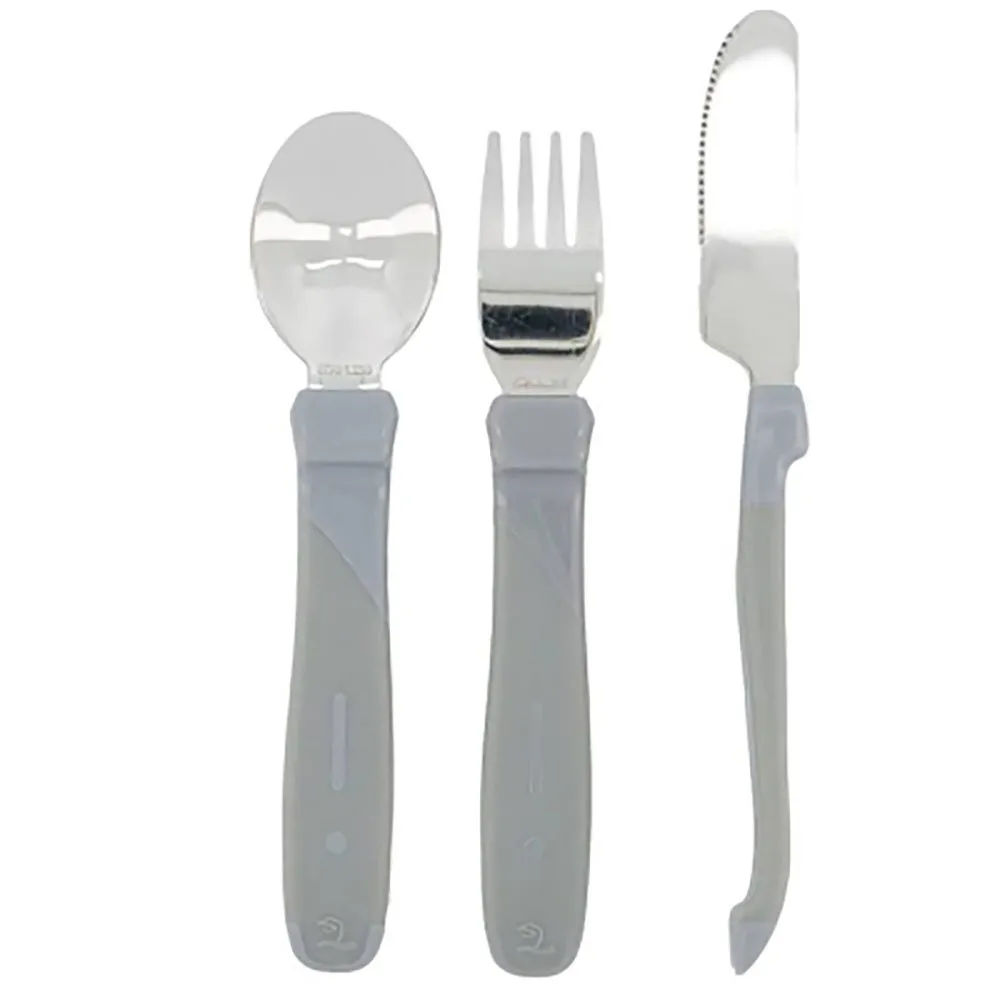 Le nostre posate per bambini in acciaio inossidabile sono disponibili in diversi adorabili colori pastello e anche in tonalità neutre come il bianco e nero, a seconda dei gusti e della personalità del tuo bambino. Il manico del coltello, della forchetta e del cucchiaio è realizzato in plastica Pp e Tpe di alta qualità e, naturalmente, è privo di Bpa, Bps e Bpf per essere sicuro per te e il tuo bambino. Sono anche extra corti per adattarsi perfettamente alle mani del tuo bambino e la superficie morbida al tatto impedisce alle posate di scivolare via quando il tuo bambino prende pezzi di cetriolo o gustose salsicce dal piatto. Le posate sono adatte ai bambini a partire dai 12 mesi di età che possono già mangiare da soli e a coloro che sono pronti ad imparare. Pssst - Non dimenticare di completare la tavola con alcuni dei nostri piatti e tazze facili da usare.