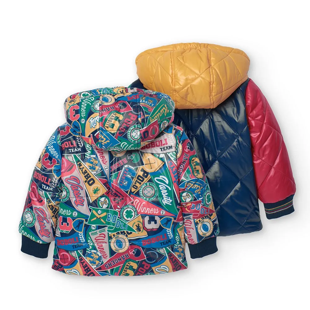Dit is een reversibele parka voor babyjongens, ideaal voor de winter.