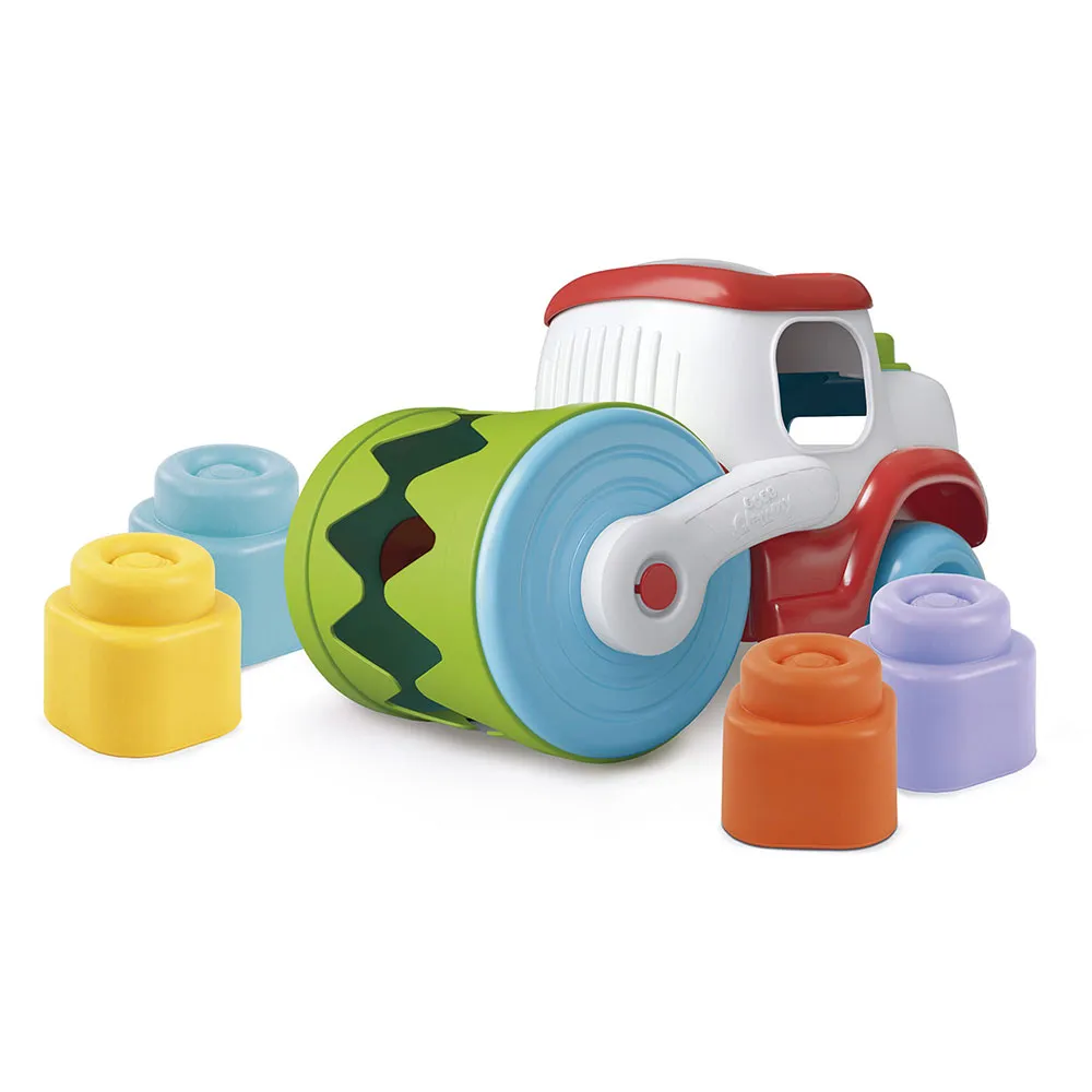 Het kind zal plezier beleven aan het laten eten van de zachte rol aan de blokken, het bouwen van torens, het inbrengen van de blokken door het raam en het terughalen ervan door de achterklep te openen.