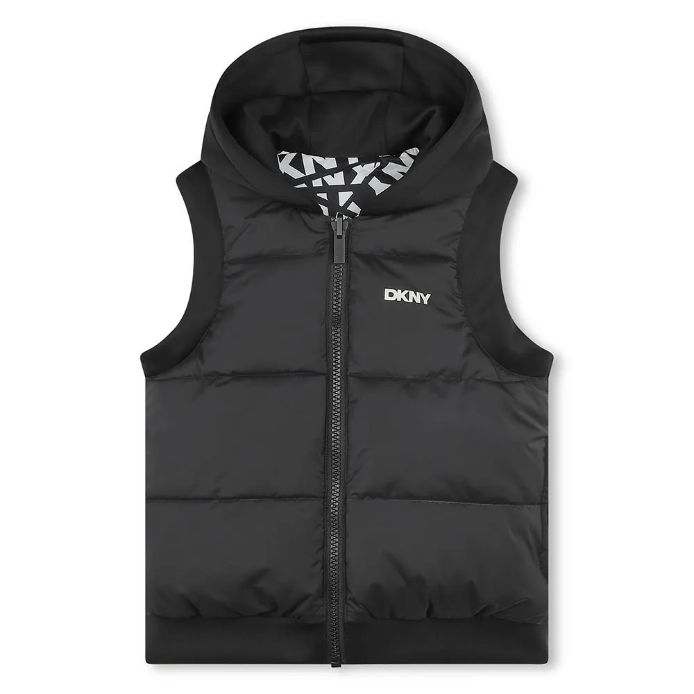 **Dunne, waterafstotende, reversibele donsjas zonder mouwen.**