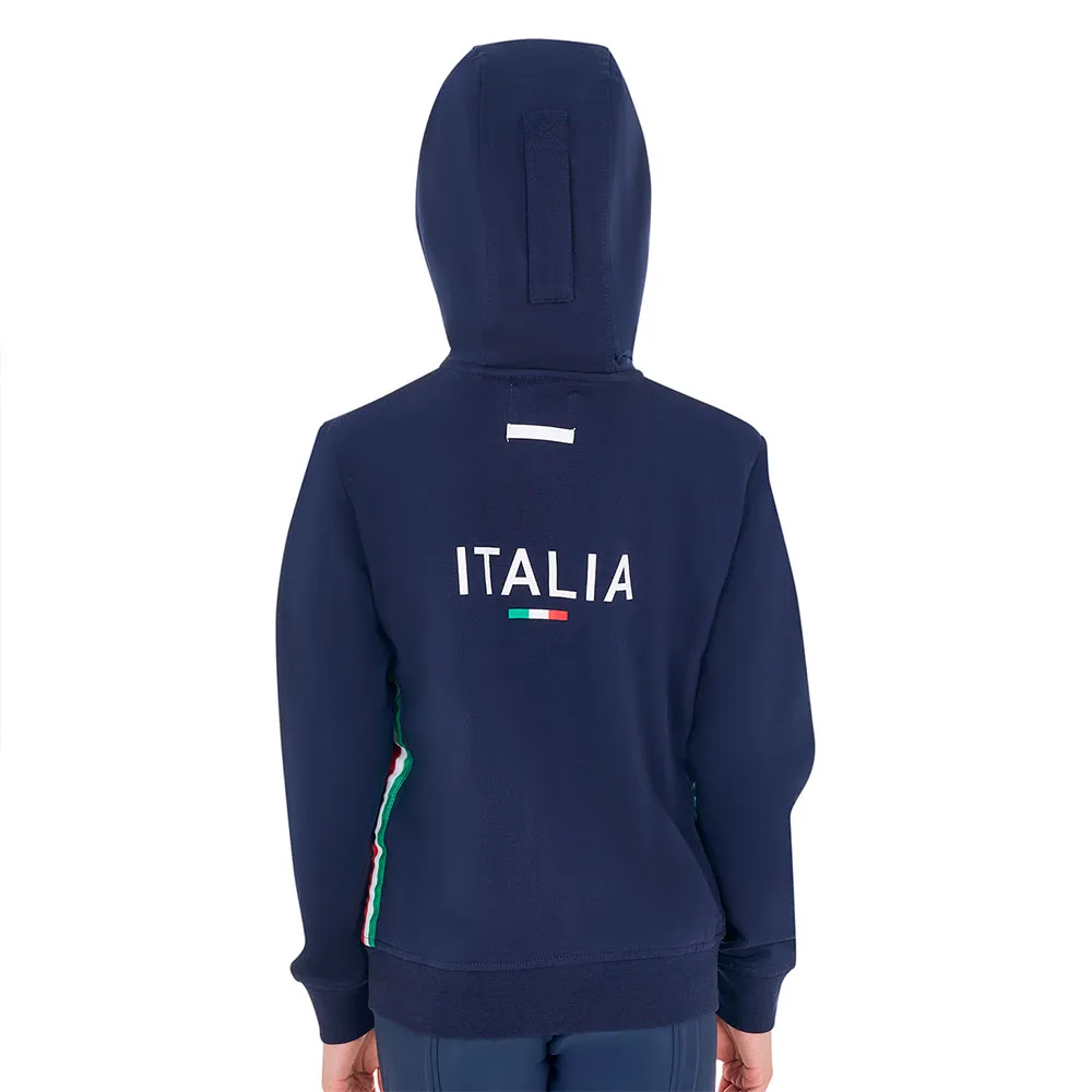 Equestro X FISE sweatshirt voor kinderen, gemaakt van zacht katoen met een praktische winddichte ritssluiting aan de voorkant en verstelbare capuchon, om de ruiter ongeëvenaard comfort te bieden.