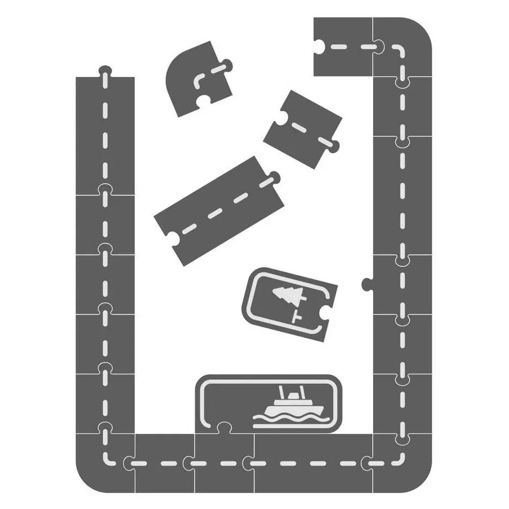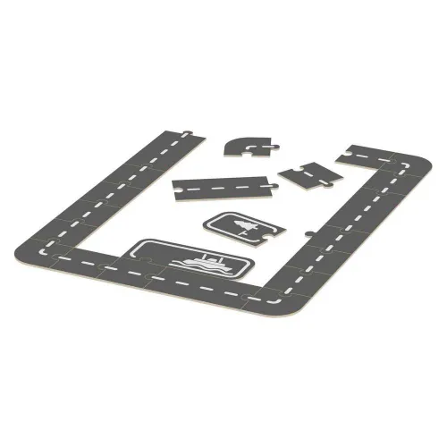 De baanstukken zijn aan beide zijden bedrukt zodat je gemakkelijk een lange, rechte weg, een bochtige weg of een rechthoekige baan kunt bouwen.