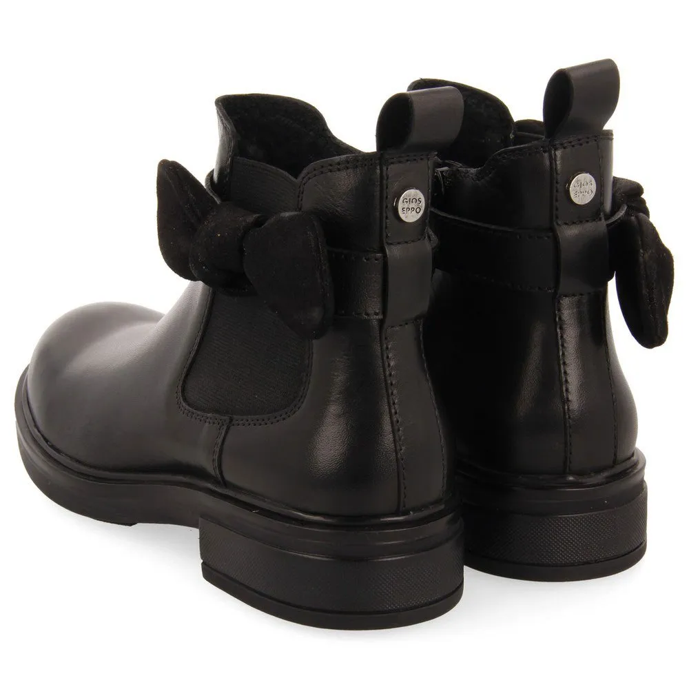 Zwarte leren Chelsea boots met een afneembare riem en strik.