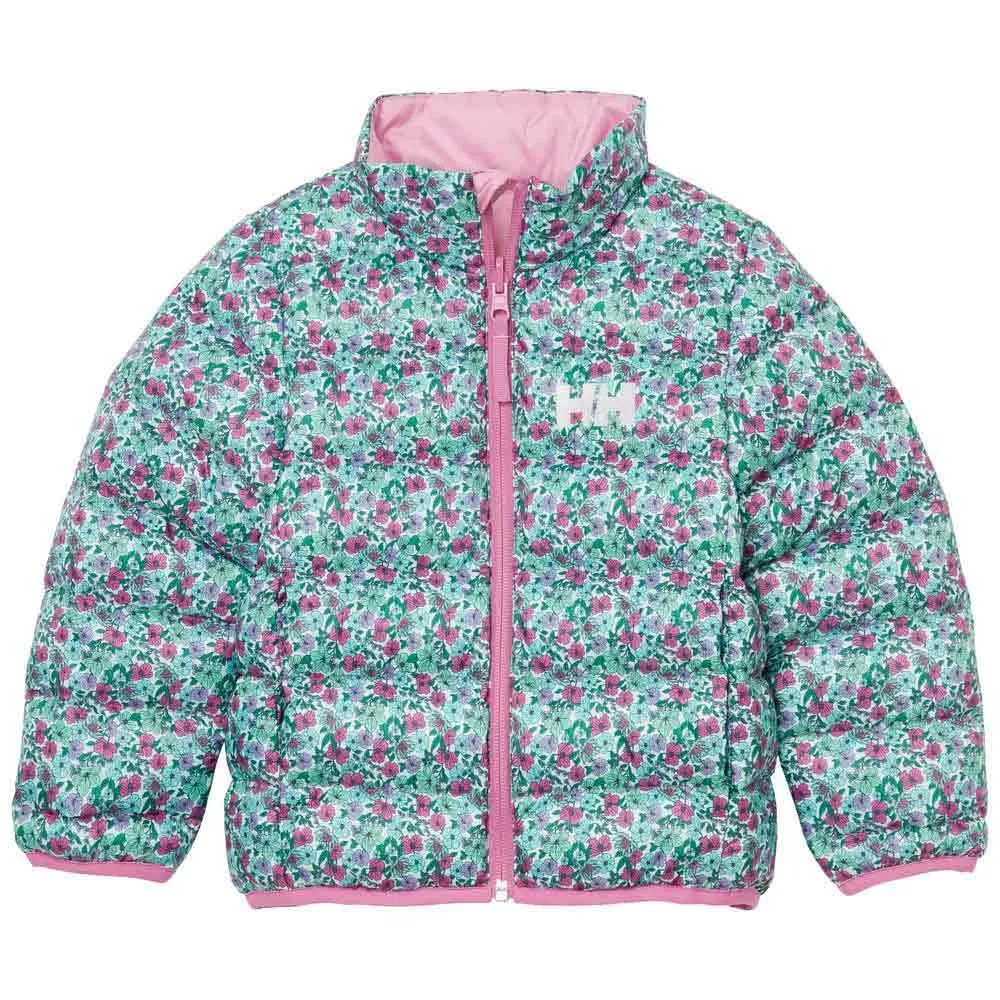 Een omkeerbaar, gewatteerd jack voor kinderen, dat wordt geleverd met een kleine opbergzak en zeer veelzijdig en licht is.