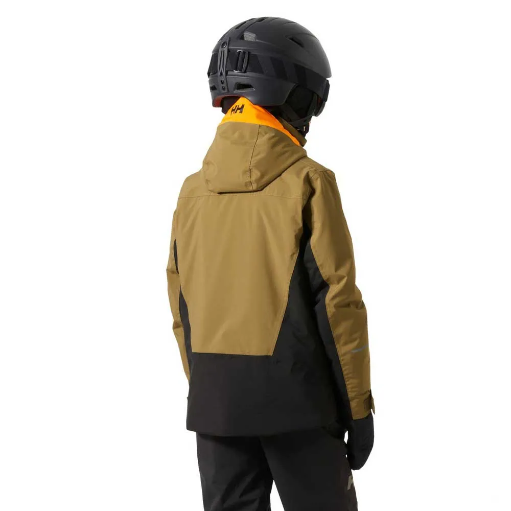 Extra details zijn neon en reflecterende elementen voor zichtbaarheid, een skipaszak, een afneembare capuchon, een trekkoord in de zoom en een sneeuwvanger.