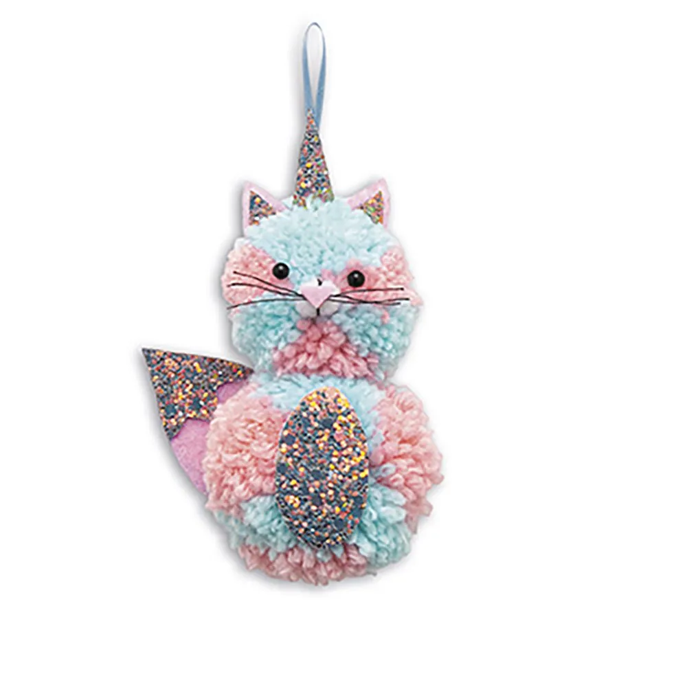 Betreed de wondere wereld van eenhoorns, glitter en regenbogen! Deze creatieve set bestaat uit 6 decoraties en modeaccessoires om zelf te maken! Een eenhoorn trofee om in elkaar te zetten, een dromenvanger, 2 broches, een caticorn pompon en een hangende regenboogdecoratie van draad en katoen.