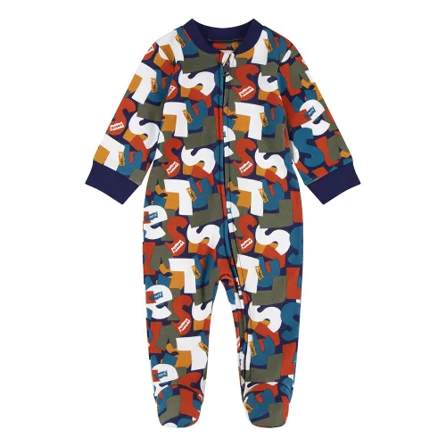 Laat je kind vanaf het begin kennismaken met tijdloze mode. Deze jumpsuit heeft een speelse en moderne "Jumbled" all-over print, met het wereldberoemde Levi´s® logo in een dynamisch patroon. Het is een frisse, eigentijdse kijk op het rijke erfgoed van het merk, waardoor een stijlvol statement wordt gemaakt dat zowel leuk als direct herkenbaar is. De klassieke ronde hals en geribbelde manchetten zorgen voor een nauwsluitende pasvorm die tocht buiten houdt, zodat je kleintje lekker warm blijft. Dit kledingstuk is meer dan alleen kleding; het is een duurzaam, hoogwaardig kledingstuk van een vertrouwd merk, ontworpen om de avonturen van de vroege kindertijd aan te kunnen, terwijl je baby er moeiteloos cool uitziet. ---