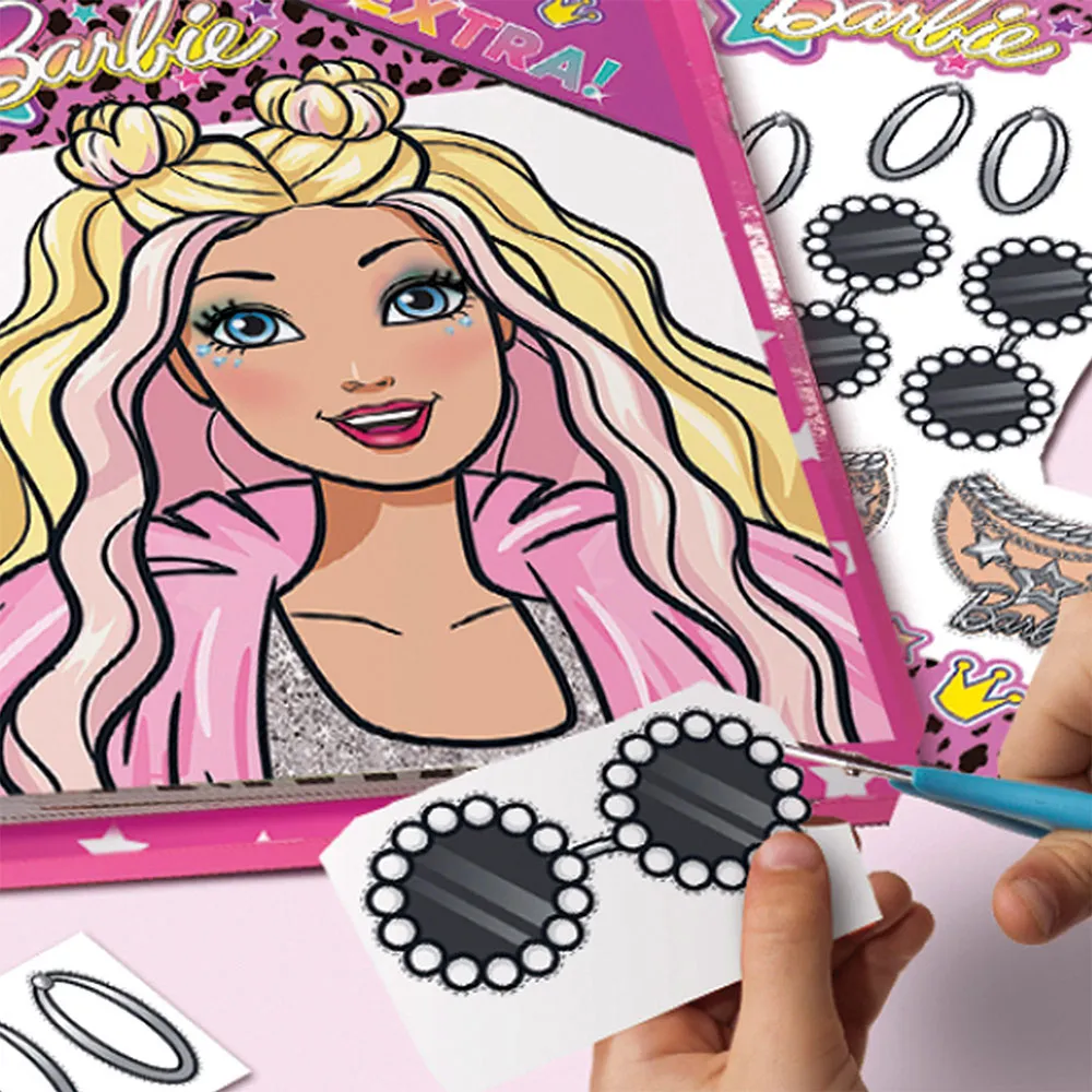 Word Barbie´s officiële stylist met deze 3-in-1 make-up set! Inclusief oogschaduws, blushers, lipgloss, zelfklevende steentjes, kwastjes, een oogpotlood en een activiteitenboek met pagin´s met illustraties van verschillende Barbie-gezichten, knipsels en accessoires om hun looks op te maken en te personaliseren.