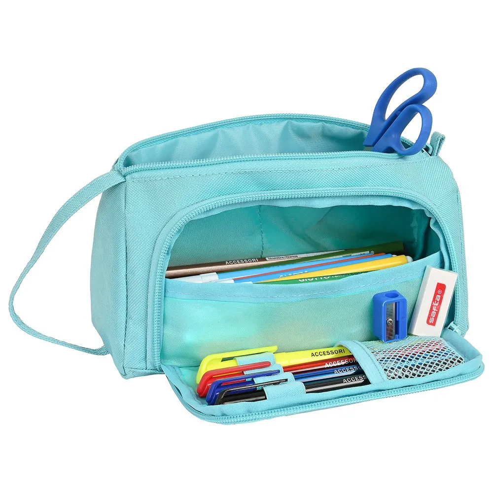 De flap bevat 4 elastiekjes voor pennen, highlighters en grafiet, en een meshzakje.