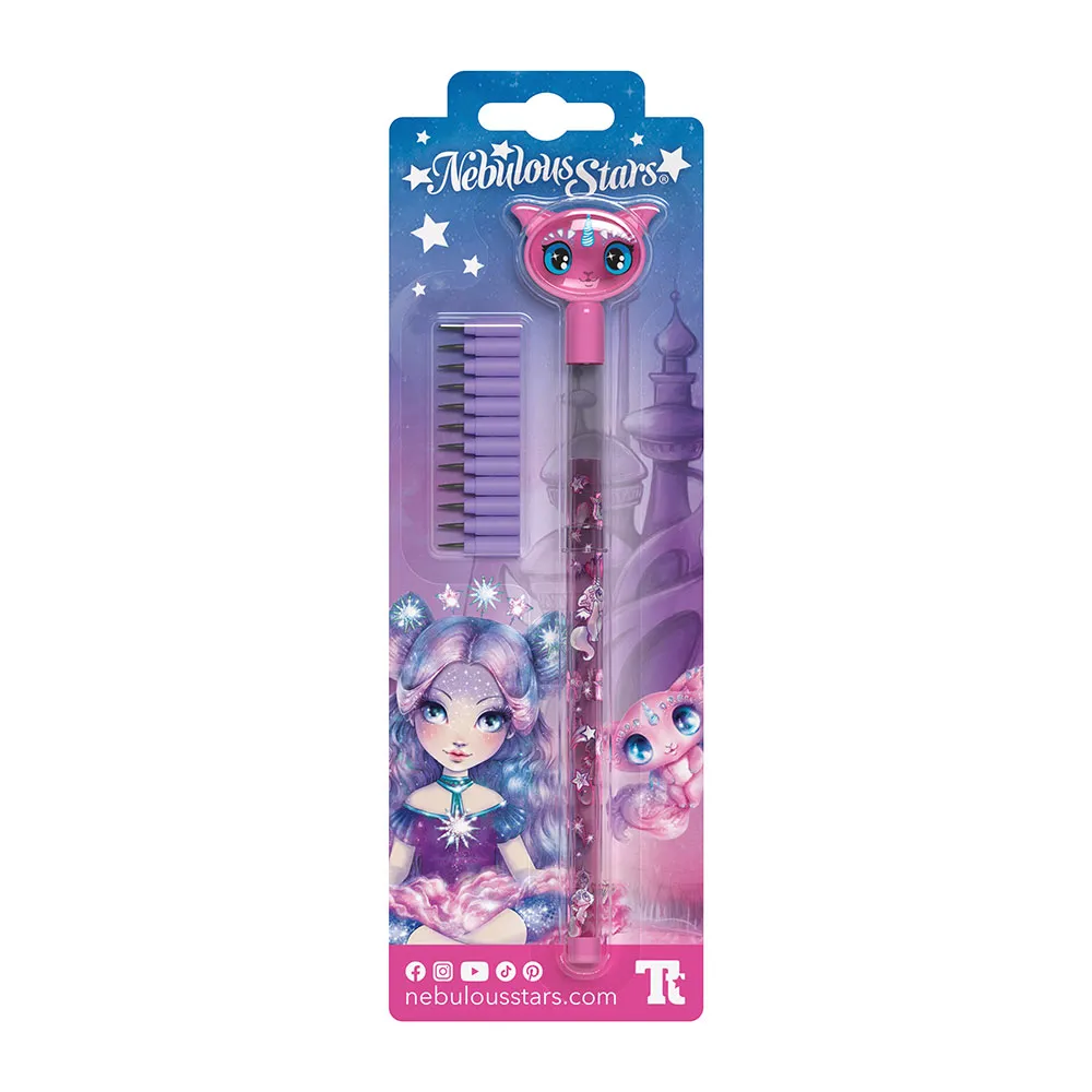 Het NEBULOUS Multipoint Potlood is meer dan alleen een schrijfinstrument; het is een portaal naar het betoverende universum van Nebulous Stars. Elk potlood is prachtig versierd met het dromerige, met sterren gevulde artwork en de personages die het merk definiëren, en inspireert verhalen en avonturen bij elke streek. De levendige selectie kleuren die is inbegrepen, is zorgvuldig gekozen om nevels, sterrenstelsels en mystieke wezens tot leven te brengen. Van diepe kosmische blauw- en paarstinten tot briljante sterachtige geel- en rozatinten, het assortiment biedt alles wat nodig is voor gedetailleerde illustraties, kleurrijke schoolprojecten of gewoon het krabbelen van fantastische nieuwe werelden.