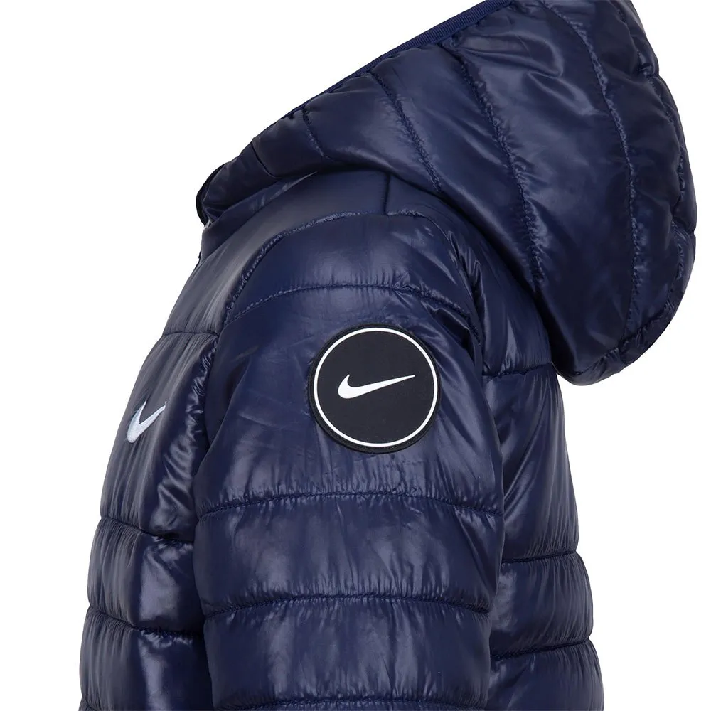 Het jack heeft een strakke midnight navy kleur, waardoor het een moderne en veelzijdige uitstraling heeft. Het wordt aangevuld met het iconische Nike-logo op de borst, wat een sportieve touch geeft aan het algehele ontwerp. De midnight navy tint zal moeiteloos bij verschillende outfits passen en gemakkelijk een favoriet jack voor kinderen worden.