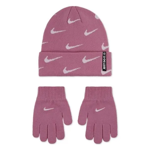 De Nike Set bevat een muts en bijpassende handschoenen gemaakt van kasjmierachtige stof om je warm en comfortabel te houden.