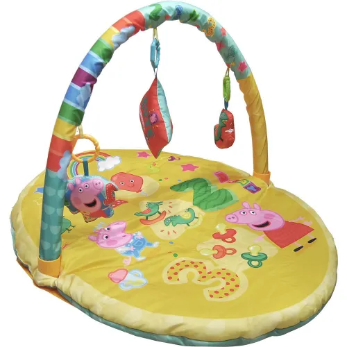 De PEPPA PIG Play Gym Mat Multicolor wordt geleverd met afneembare speelgoedjes die met de bijgevoegde lussen op verschillende hoogtes kunnen worden opgehangen. Deze speelgoedjes bevatten rammelaars, piepers en geknetter om baby´s te vermaken en te stimuleren. Ze zijn ook ontworpen om hand-oogcoördinatie en zintuiglijke ontwikkeling te bevorderen.