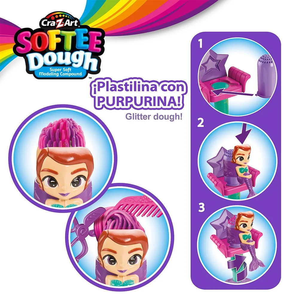 De kleine zeemeerminnen moeten hun haar laten doen voor een geweldig feest onder de zee vanavond! Open je styling salon en geef ze schattige kapsels met deze zachte, gladde en glanzende Cra-Z-Art speeldeeg set.