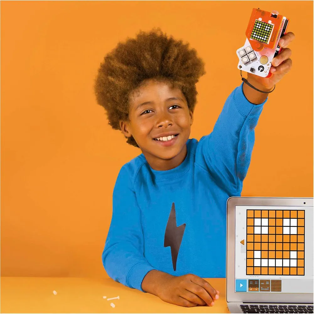 De Gamer Kit is een eenvoudig te bouwen kit voor kinderen waarmee ze hun eigen handheld-games kunnen coderen! Met behulp van ons gratis online coderingsplatform leren kinderen klassieke games hacken en coderen om hun vaardigheden op te bouwen voordat ze hun eigen games ontwerpen en coderen. Kinderen bedenken, programmeren en spelen hun eigen spellen terwijl ze belangrijke creatieve denk- en probleemoplossende vaardigheden leren. En met ons gratis online MAKE-platform zijn er tientallen projecten die ze kunnen maken!