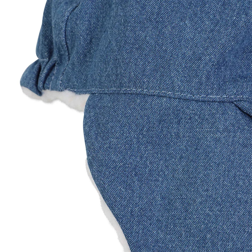 Het grootste voordeel van de T60741 is de uitzonderlijke thermische bescherming. Dit is een klassieke denim trappermuts met een pluche voering van imitatie schapenvacht, ontworpen om een uitstekende isolatielaag te bieden. De ongelooflijk zachte voering bedekt de binnenkant en de oorflappen, waardoor lichaamswarmte wordt vastgehouden om het hoofd, de oren en de nek van je kind comfortabel warm te houden, zelfs op de koudste dagen. Het trapperontwerp biedt uitgebreide bedekking, beschermt ze tegen snijdende wind en koude lucht, waardoor het een veel betere keuze is voor echte winterse omstandigheden vergeleken met een standaard muts.