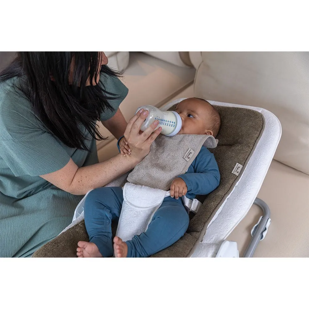 Zacht, absorbeert veel kwijl, gemakkelijk te wassen