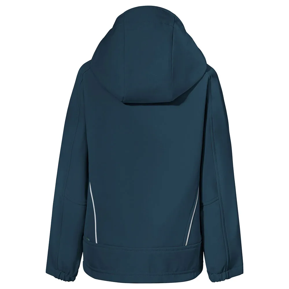 Wind- en waterafstotende softshelljas voor kinderen met capuchon en ritsvakken met reflecterende elementen gemaakt van gerecycled materiaal.