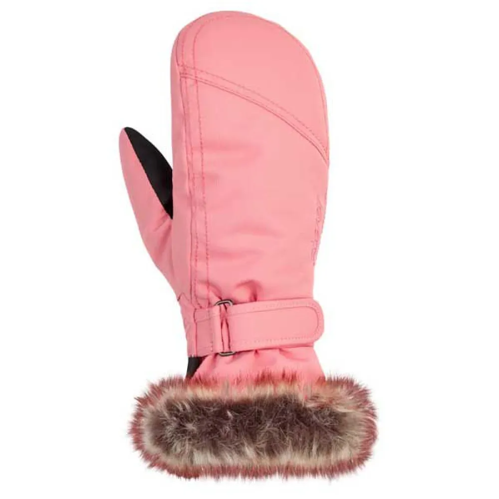 De chique, warme ZIENER skimitten LED MITTEN GIRLS voor meisjes scoren punten met trendy imitatiebont manchetten, bedrukte stof en gestructureerd materiaal. De zachte vulling houdt koude meisjeshanden aangenaam warm en zorgt ook voor optimale grip op de stokken. De slanke snit zorgt voor een elegante, meisjesachtige uitstraling. De manchetten sluiten perfect met behulp van een sluiting. Het product bevat gerecycled materiaal voor een resource-besparende aanpak ter bescherming van het milieu.