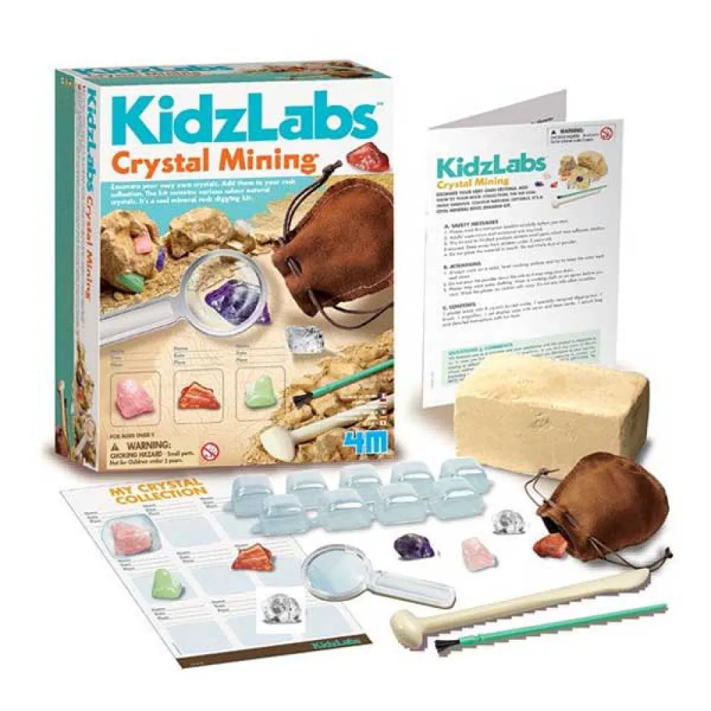 Perfekt sett for små samlere! De vil kunne grave ut naturlige krystaller fra den medfølgende steinen, lage sin egen samling av verdifulle mineraler og lære grunnleggende om forskjellige krystaller og geologi generelt.