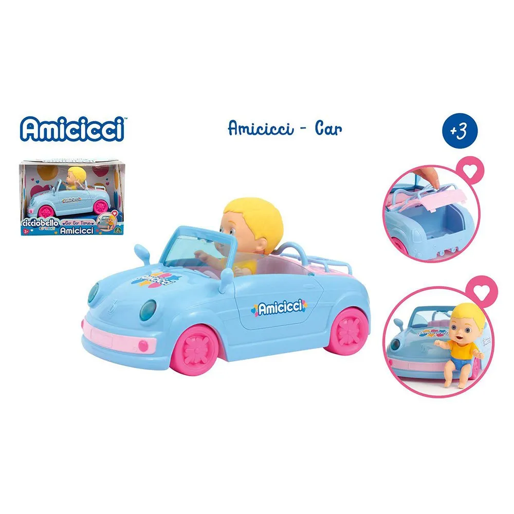Amicicci Car er det nye Amicicci-lekespillet, det inkluderer en blond Amicicci-babydukke kledd i en avtakbar og utskiftbar bleie og t-skjorte.